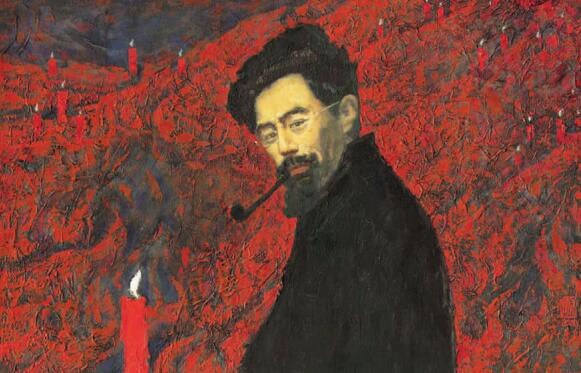 ▲闻一多常常将诗歌翻译融入自己的创作中。图为闻一多之子闻立鹏为父亲创作的油画《红烛颂》