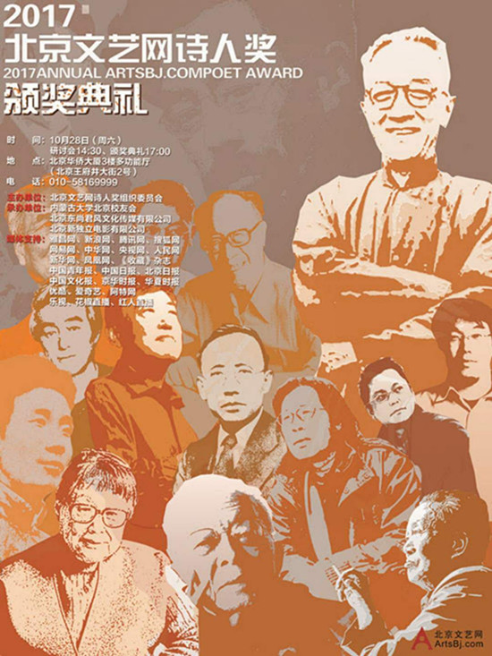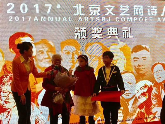 10月28日下午,来自全国各地的诗人,艺术家,文化学者等汇聚北京华侨大厦,出席诗歌界年度盛典:北京文艺网诗人奖。本届诗人奖颁发给97岁的世纪老人、九叶派诗歌重要的成员郑敏先生。上届诗人奖获奖诗人食指先生为郑敏颁奖。颁奖仪式由敖雪主持,台湾中央研究院研究员、诗人、《两岸诗》总编辑杨小滨致授奖辞。艺术家、北京文艺网诗人奖组委会主任、中国艺术研究院研究员杨佴旻博士介绍了本次活动组织情况。