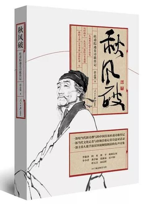 《秋风破》由人民日报出版社出版,是首部根据诗圣杜甫的人生踪迹创作的当代诗歌传记。作者彭志强从2012年(杜甫诞辰1300周年)开始系统研究与杜甫有关的各种文献书籍,并于2015年春,从成都杜甫草堂出发,历时两年,横跨十省,行走考察杜甫一生留下的八十一处遗迹(博物馆、纪念馆、杜公祠、杜甫墓),作者所到之处以当代文化记者(诗人)与唐朝首席记者(诗人)隔空对话,化为诗句,借古抚今,给杜甫立传,向诗圣致敬。(来源:人民阅读)