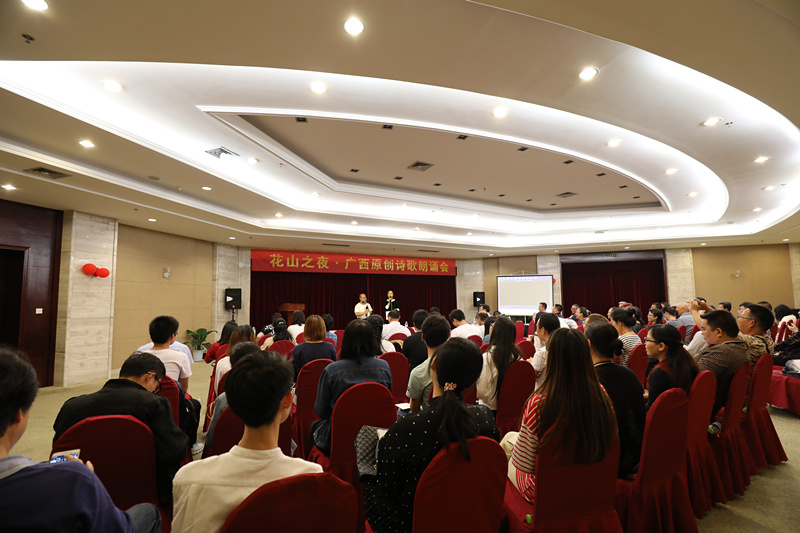诗会期间,还进行了世界文化遗产花山岩画遗迹采风、“花山之夜”广西原创诗歌朗诵会等活动。