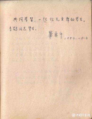 毕奂午题词:“共同学习,一同做毛主席的学生,李蕤同志挚友”