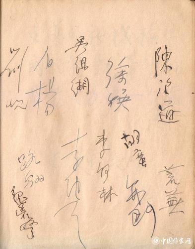 陈望道、荒芜、吴组缃、李何林、白杨、路翎、刘岘、徐焕、魏荒弩、陈亦门、胡蛮、李纯青签名