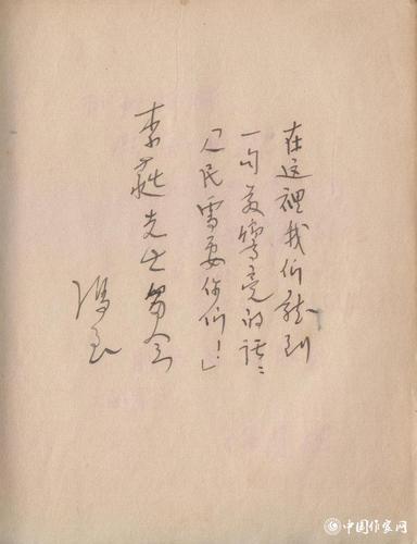 冯至:“在这里我们听到一句最嘹亮的话:人民需要你们。李蕤先生留念。”