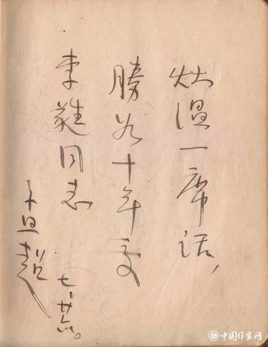 孟超题词:“灶温一席话,胜如十年交。李蕤同志”