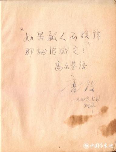 唐弢题词:“如果敌人不投降,那就消灭它!高尔基语”