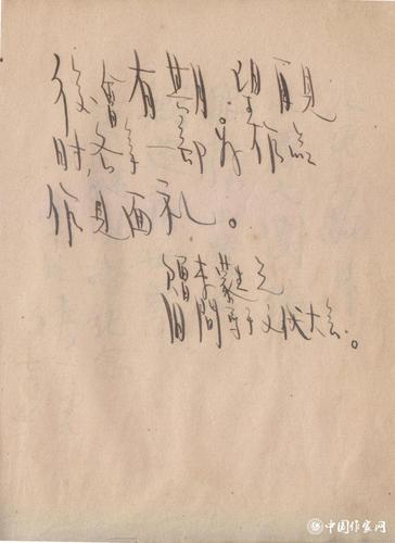 田间题词:“后会有期。望再见时,各拿一部好作品作见面礼。”