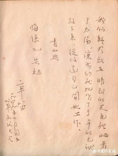 萧三题词:“怀念中南海,这是落脚点,也是我们文艺大军的出发点”