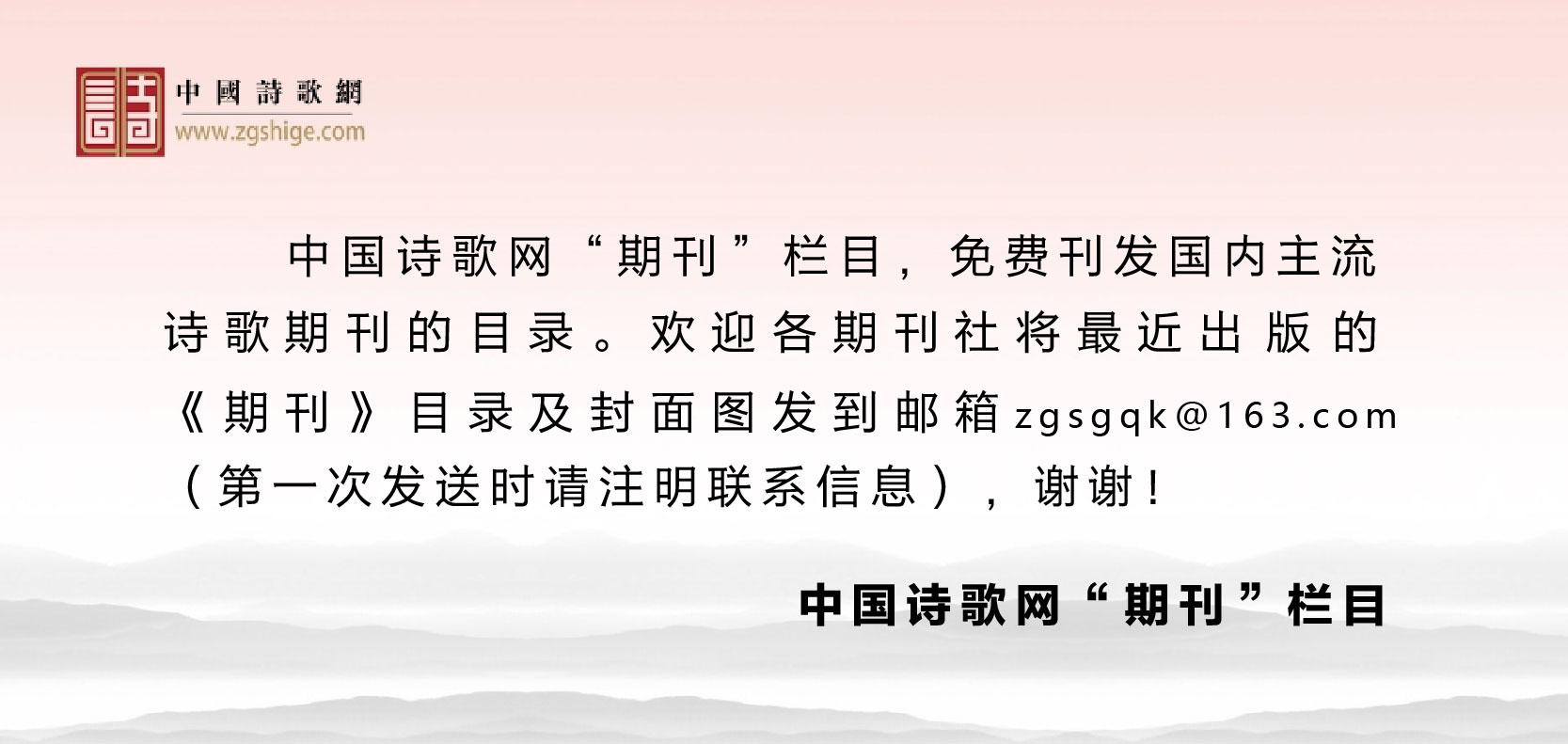 本栏目邮箱只接收“期刊目录”来稿,“诗词作品”请点本网页顶部注册发表!