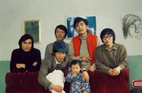 (1990年前后,发生在张子选兰州家中的一次诗人聚会。后排从左到右依次为:王寅、封新城(俯身者)、张子选、丁当、韩东。)