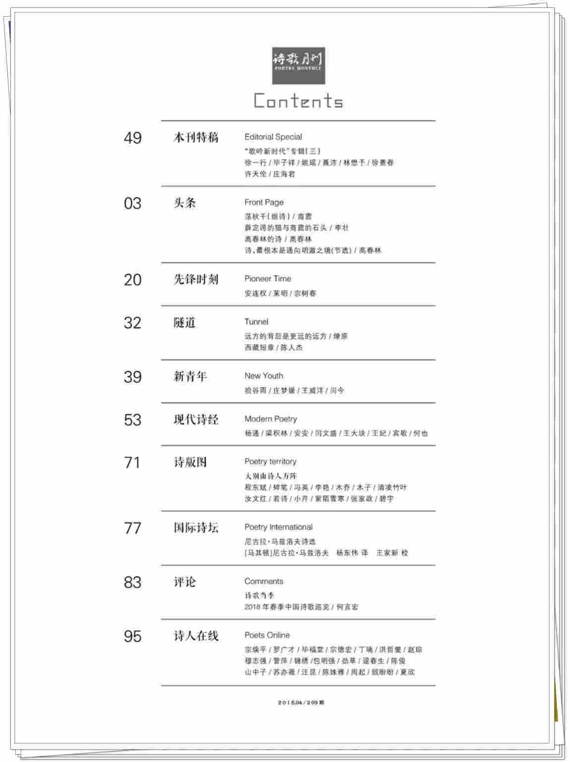 本期推出《诗歌月刊》2018年4月头条诗人——商震。