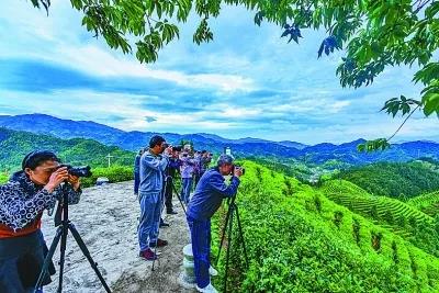 江西吉安遂川县文艺轻骑兵摄影小分队在茶乡汤湖镇采风、创作。光明图片/视觉中国