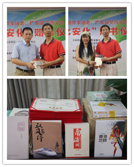 2018年6月2日下午,广东省作家协会、广东散文诗学会“文化安化”赠书仪式在省作家协会“岭南文学空间”举行,省作协会员、省散文诗学会会员等120余人参加了活动。主办方表示,省作协、省散文诗学会代表通过向湖南省安化县赠送书籍、书画作品、举办散文诗朗诵会等形式多样的活动,助力安化县文化精准扶贫,助推安化县精神文明建设。