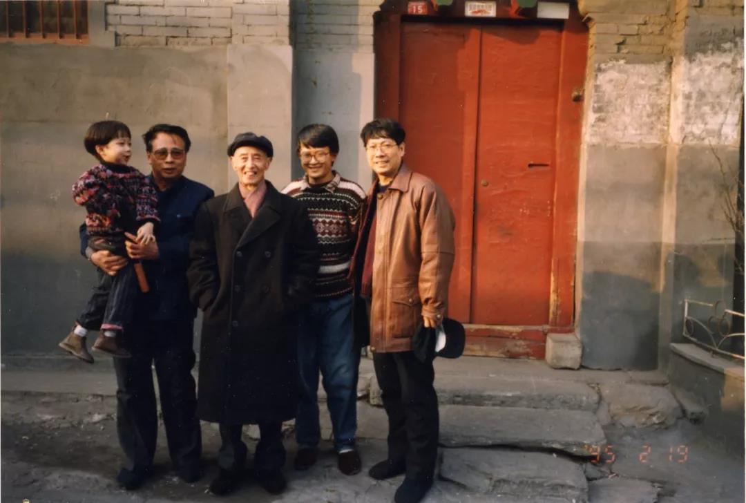 1995年2月19日,小学校长刘德田(左二)等老街坊和我父亲在我家门前合影。