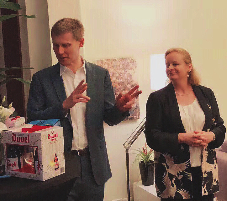 比利时驻沪总领事保罗•兰波先生与副总领事伊莎贝尔•曼琳女士在诗歌音乐朗诵会致辞