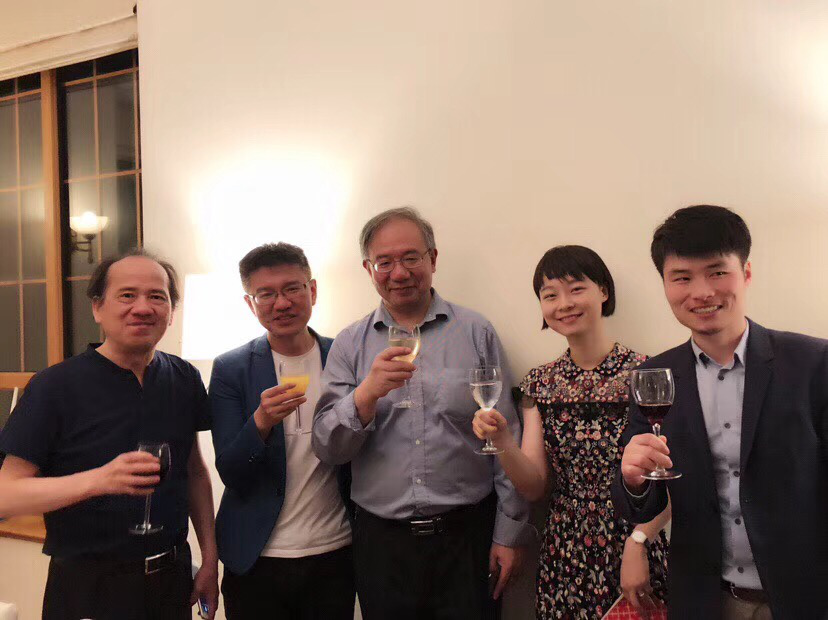 复旦外文学院“沙仑的玫瑰”在现场(右起:陈杰、姜林静、魏育青、李双志、海岸)
