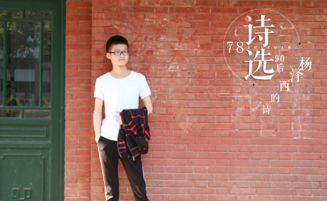 杨泽西,男,1992年10月生于河南漯河。获首届“国际诗酒文化大会”现代诗铜奖、第四届全国大学生“野草文学奖”一等奖、2016、2017邯郸大学生诗歌节一等奖等奖项。诗歌见于《诗刊》《中国诗歌》《星星诗刊》《诗歌月刊》《草堂》。