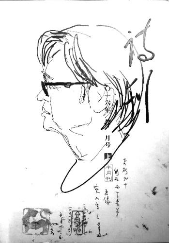 这是他的自谦,能够得到九十高龄高莽先生为我画像,人生之幸事,应该属于我才是。尤其是看到他题字时,手中的笔在不住地颤抖,心里很是感动,也很感激。在所有为我画像的作品中,坦率地讲,这一幅真的是最为简洁而传神。