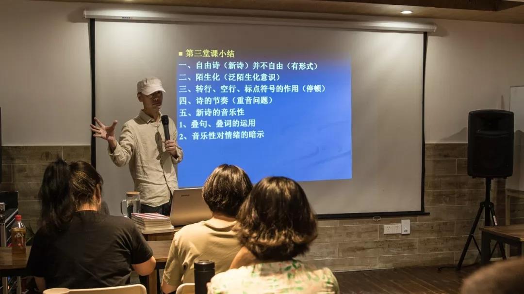 “我意识到,很多人在写作上需要方法来推动,这种推动能大大缩短他们写作的学徒期。我在年轻时候,我缩短学徒期的方式是跟一些作家在一起混,通过他们的只言片语获得一些启发。比如,车前子看我的作品,曾说过一句话就对我触动很大,他说:你有没有意识到诗歌的外形也是有美感的。他这句话立刻让我领悟到自由诗的分行是很讲究的。我这个课就相当于把我以前跟着作家去混的,让自己加速成长的经验,把它搬进课堂,把写作者的学徒期,从5-10年缩短为2-3年。”黄梵说道。