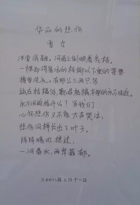 我在猜测,所有诗人之所以有写手稿的习惯,他们的内心大多都在想,我在做诗歌的准备工作。诗歌的准备工作还不是诗,还没有达到一种拿得出手的光辉。诗人的手稿,犹如诗人自我躲藏、自我生长的灌木丛。诗人躲在他自己手稿的灌木丛里,将可能遭遇什么样的命运?有一颗燃烧弹击中诗人手稿的灌木丛,引得火焰尽情燃烧,一个诗人与他自己的手稿显然是融为一体的。我们也见过诗人离开他自己的手稿,离开他自己过去的诗集,跳到清凉的河中躲避火焰的情况,诗人避开了自己的灌木丛。但是如果诗人坚持不跳到身旁清凉溪流里,这个燃烧必定是与诗人同归一体。我们现在来看这些手稿展示的时候,好像看不到火焰,好像只记录了陈年旧事,实际上,手稿一直在燃烧,这就是我对祝凤鸣与牧野举办这个活动尊敬的原因。