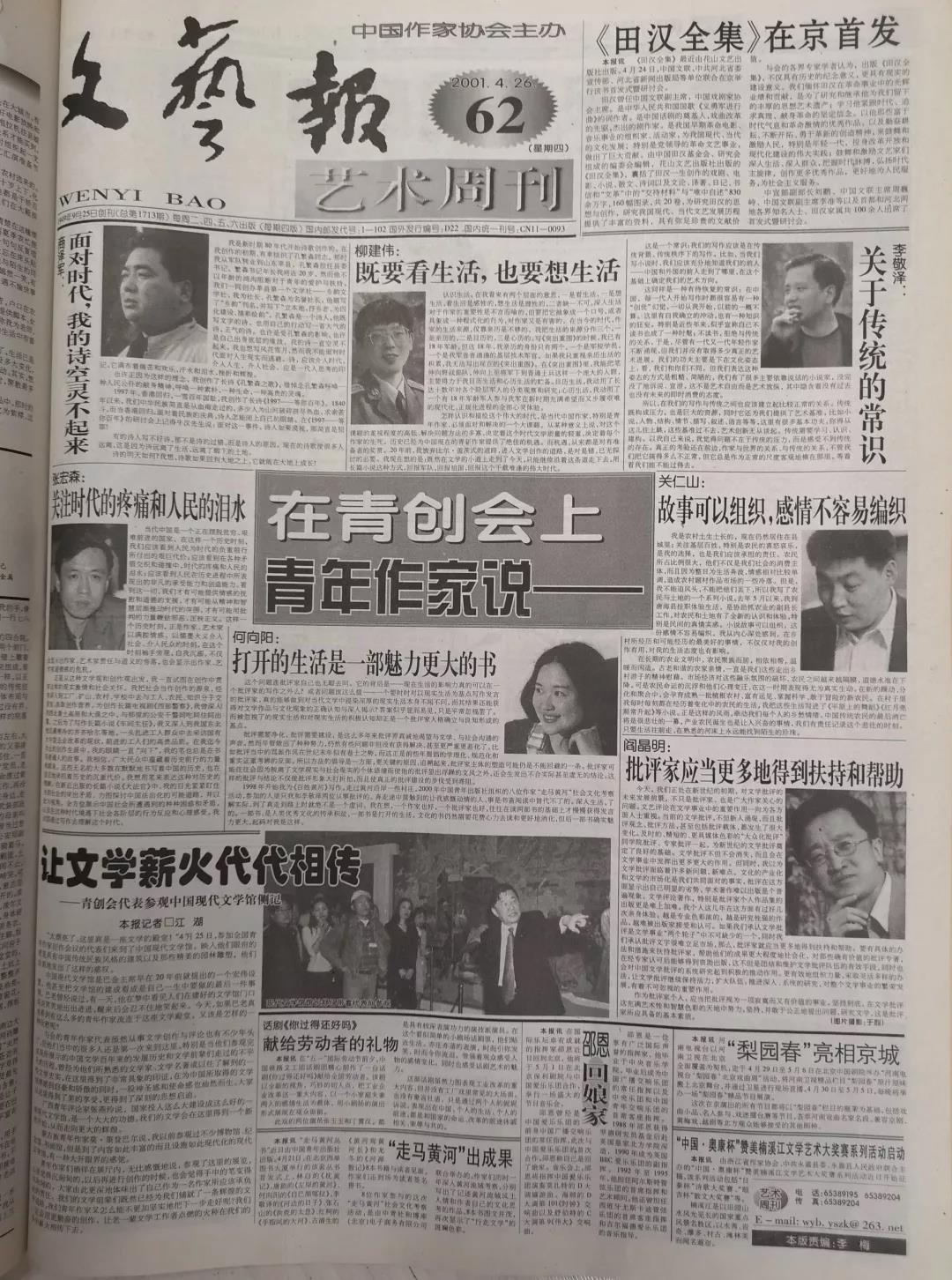 2001年4月23日至26日,230余位来自全国的青年作家又一次聚到了北京,参加由中国作协、共青团中央联合召开的全国青年作家创作会议。中共中央政治局委员、中央书记处书记、中宣部部长丁关根出席会议并讲话,向青年作家提出希望。中国作协党组书记、副主席金炳华在闭幕式上作了题为《让新世纪的文学星空更加灿烂》的讲话。团中央书记处第一书记周强在闭幕式上讲话。