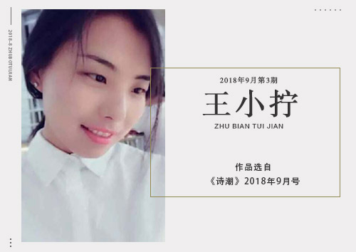 王小拧,90后,自称“孤独患者”、“偏执狂”,梦想嫁给诗歌和爱情的“妖精”。其他不详。