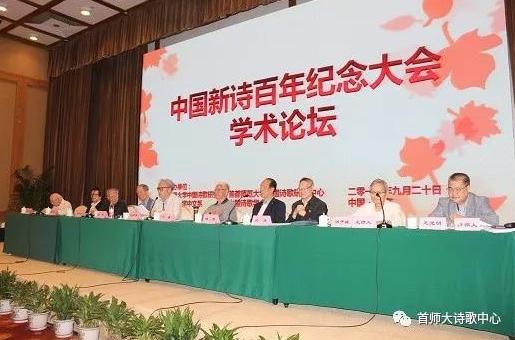 2018年9月20日,由北京大学中国诗歌研究院、北京大学中文系、首都师范大学中国诗歌研究中心和中国诗歌学会共同主办的“中国新诗百年纪念大会学术论坛”在北京召开。谢冕、孙绍振、叶橹、张默、晓雪、骆寒超、吕进、刘登翰、吴开晋、洪子诚、赵敏俐、吴思敬、陈晓明、王光明、岩佐昌暲(日本)、黄怒波等国内外知名学者、诗人出席了论坛。