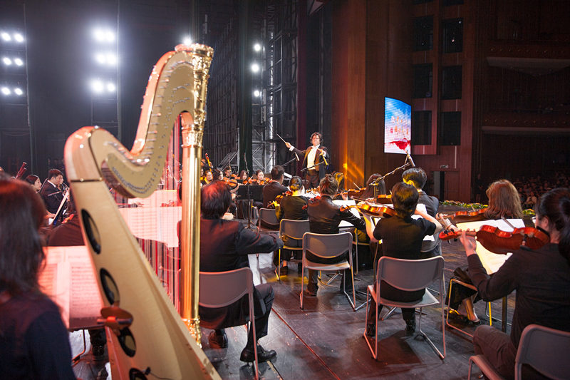 来自上海爱乐交响乐团的80位艺术家奏起《红旗颂》,拉开了整场晚会的序幕。晚会以“激荡四十年,绍兴再出发”为主题,分为风雅绍兴、风云绍兴、风起绍兴三个篇章。