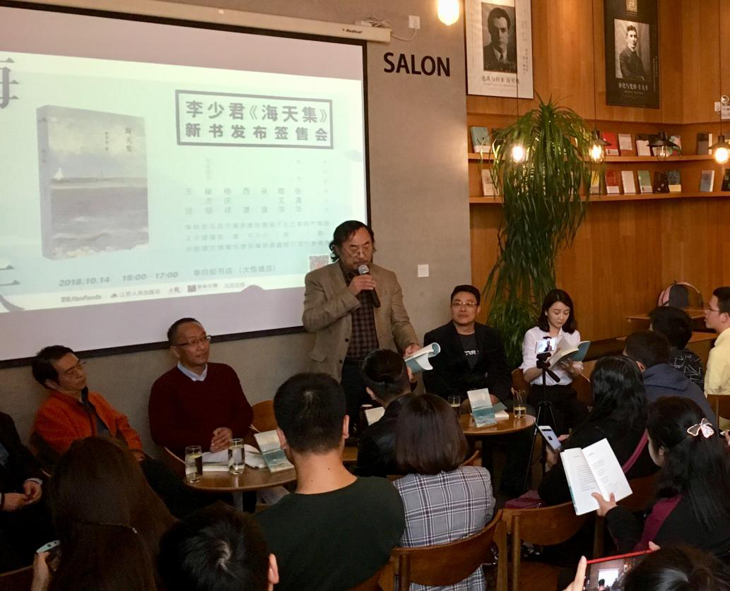 10月14日,由垦荒人(北京)科技有限公司、北京大观世纪文化传媒有限公司、江苏人民出版社、凤凰直播共同主办的“著名诗人李少君《海天集》新书签售发布会”在北京著名文化场所单向空间大悦城店举行,著名评论家、著名诗人张清华、敬文东、朵渔、西渡、杨庆祥,中央电视台主播崔志刚、王欣作为特邀嘉宾出席本次活动。现场有诗人:陈勇、丁鹏、张媛媛、述川、梁豪、张小榛、江汀、黄健东、康雨辰、林子懿、唐小林、苏笑嫣、陈建松、杨碧薇现场朗诵《海天集》篇章。
