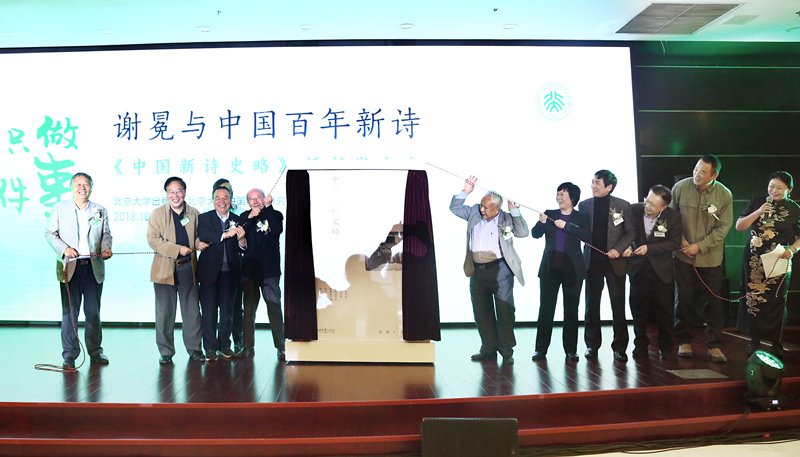 2018年10月16日,北京大学中国诗歌研究院、北京大学出版社、北大培文联合主办的“一生只做一件事:谢冕与中国百年新诗——《中国新诗史略》新书发布会”在北京大学隆重举行。北京大学中国诗歌研究院院长谢冕,北京大学中文系教授、著名学者严家炎,北京大学原校长、中科院院士、国际纯粹与应用化学联合会主席周其凤,北京大学党委常委、宣传部部长、北京大学中国诗歌研究院常务副院长蒋朗朗,北京大学中文系教授曹文轩,中国诗歌学会会长、北京大学中国诗歌研究院副院长、诗人黄怒波,首都师范大学教授、中国诗歌研究中心副主任吴思敬,北京文艺评论家协会主席孟繁华,沈阳师范大学教授贺绍俊,北京大学中文系主任、长江学者陈晓明,北京大学教授、艺术学院副院长陈旭光,北京大学中文系教授臧棣、邵燕君、姜涛,清华大学教授肖鹰,首都师范大学教授张志忠、孙晓娅,中国人民大学文学院教授张洁宇,南开大学文学院教授李润霞,四川大学人文学与新闻学院特聘教授刘福春,《光明日报》领衔编辑彭程,《光明日报》文艺部主任邓凯,《诗探索》作品卷主编林莽,文化学者徐庆全,作家石一枫,《脊梁》主编萧立军,北京大学出版社党委书记兼副社长金娟萍等百余位专家学者和诗人济济一堂,共同见证百年新诗发展史的学科研究大事件。会议由谢冕的两位学生孟繁华教授和高秀芹博士主持。