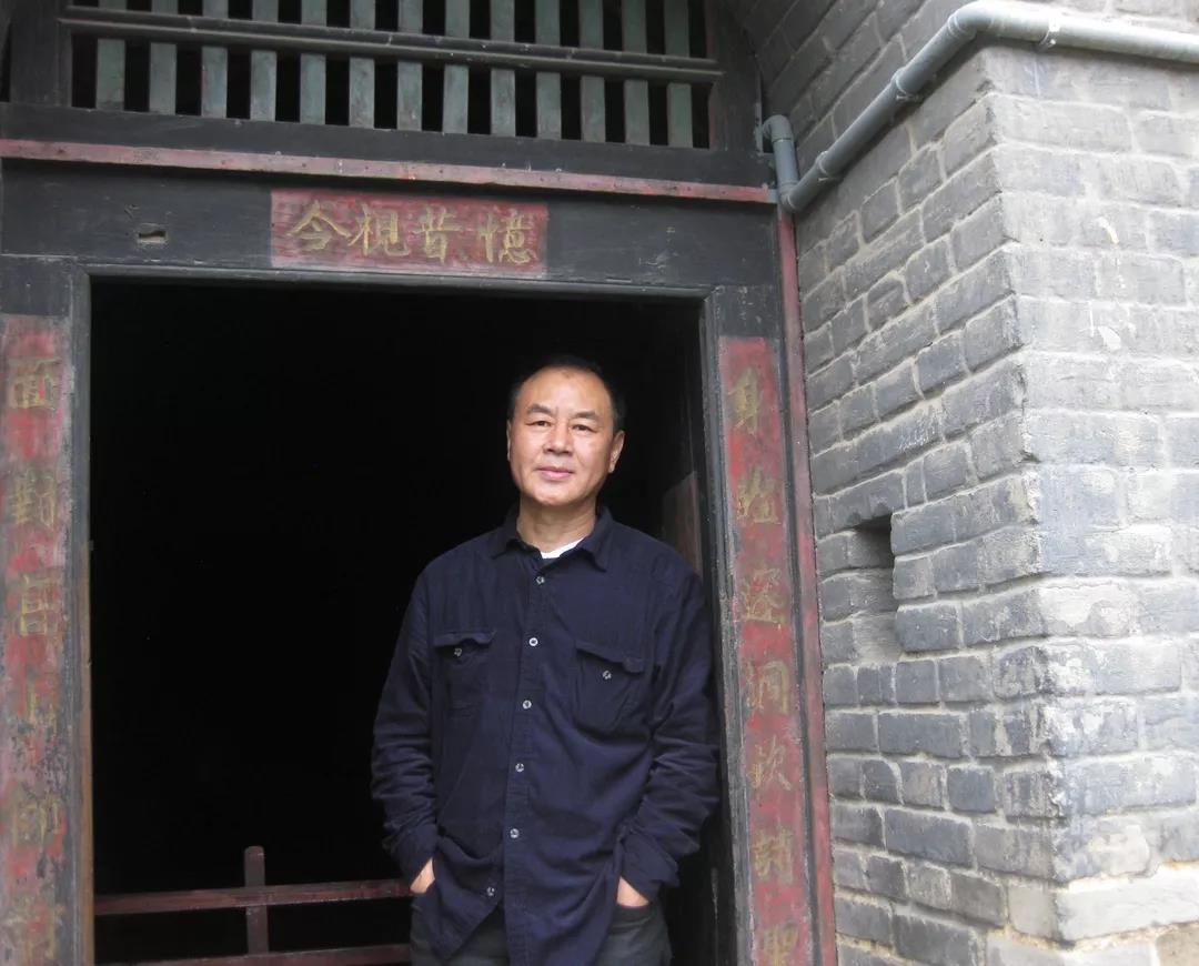 坐在自家的院门前。几只白鹅