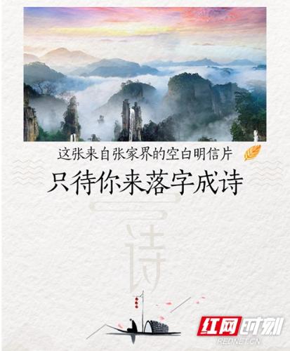 “写给张家界的精美短诗”全民诗歌创作大赛于今日同步启动。本次大赛以线上H5形式呈现,将张家界美景与诗歌创作结合,互动性强,创新全民诗歌创作传播载体。