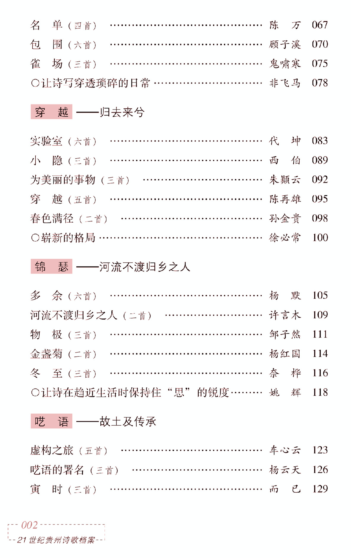 为更好体现观察与沟通,该书特别附录了黔省李寂荡、赵卫峰、颜同林、西楚、徐必常、姚辉、向笔群、非飞马、朱永富、颜若水等不同年龄段代表诗人、编辑和评论家对所选诗作进行了相关评介与导读,颇具创意。