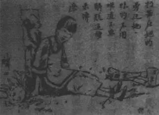 以《解放画报》为例,它拥有着近代中国最早一批明确使用“她”字的图画。刊登在画报上的作品或批判妇女自贱自残、麻木不争的愚昧行为。或呼吁、鼓励妇女从家庭内部反抗不当的教训开始,逐渐走向社会,实行自救等等,总之都无一不以妇女解放、促其觉醒自强为主题。