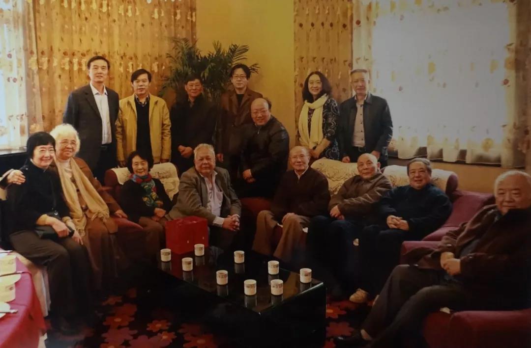 孙玉石先生夫妇与严家炎先生夫妇、谢冕先生夫妇、王信先生、钱理群先生、方锡德教授、解志熙教授、李今教授、高远东教授与陈晓明教授等合影