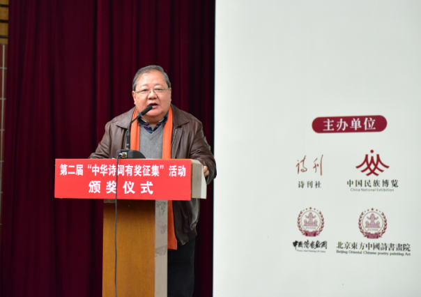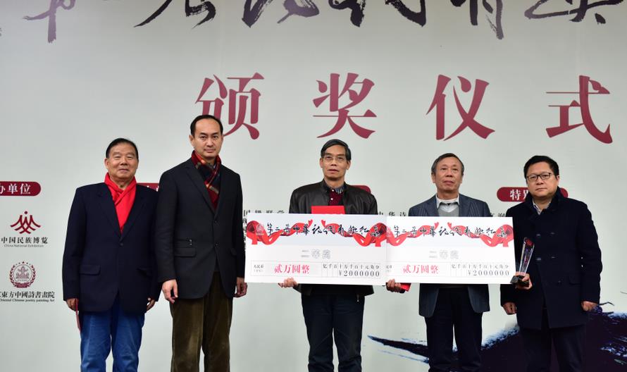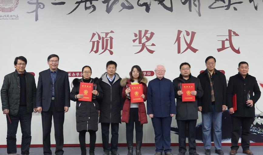 2018年12月15日上午,备受关注、轰动华语诗坛的第二届“中华诗词有奖征集”活动完美收官,在中国现代文学馆隆重举行颁奖大会。有奖征集活动一、二、三等奖获得者及优秀奖、入围奖代表齐聚北京,荣耀领奖。中国作家协会党组成员、书记处书记、副主席、十三届全国人大常委会委员吉狄马加,中国作家协会副主席、十三届全国政协常务委员白庚胜出席会议,吉狄马加作了重要讲话。白庚胜副主席和中国人民解放军总装备部原副政委、十六届中央委员、十一届全国政协常委、中华诗词学会顾问李栋恒中将,中华诗词学会副会长、国际市长联合会共同主席、北京师范大学国学院诗词研究与创作中心主任、本次活动组委会副主任、评审委员会主任、著名诗人代雨东共同为一等奖获得者颁奖。