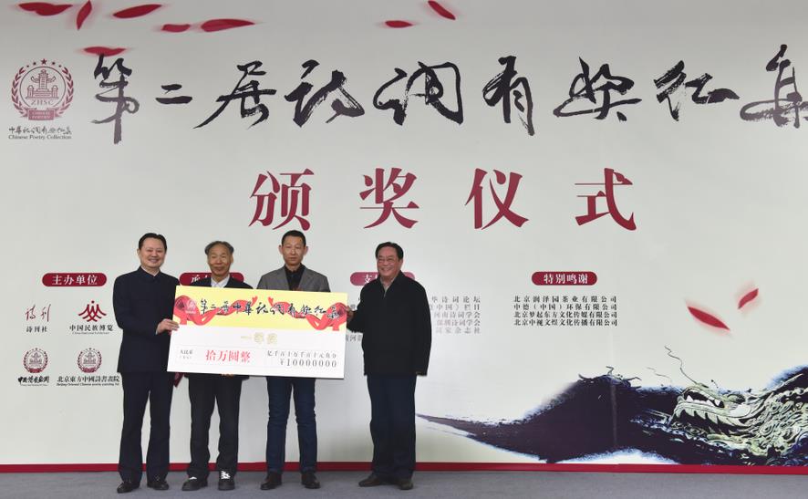 第二届“中华诗词有奖征集”活动,由中国作协诗刊社、中国民族博览杂志社、中国诗书画网、北京东方中国诗书画院举办,面向海内外隆重征稿。据了解,这次第二届“中华诗词有奖征集”活动奖金总额34万元,一等奖10万元。从5月17日至8月31日,征稿持续三个半月时间,来稿81769首。