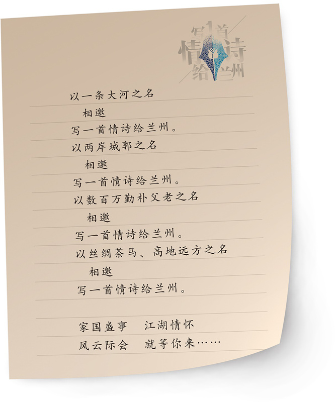 为全面展现提升兰州的人文内涵和城市形象,兰州市委宣传部、兰州市文明办以“写一首情诗给兰州”为主题,举办全国百名诗人写兰州创作交流活动,现面向全国公开征稿。