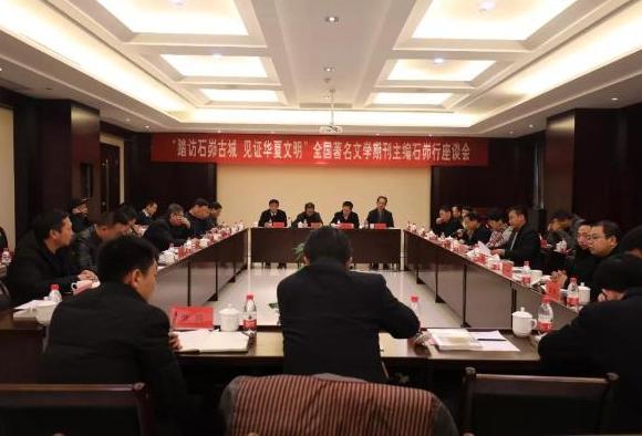 在随后召开的座谈会上,神木市人民政府副市长孙彬致辞,神木市石峁遗址管理处处长、高家堡镇党委书记张凌云等领导介绍了石峁遗址及高家堡古镇的人文历史。座谈会由陕西省作协副主席、《延河》执行主编阎安主持。