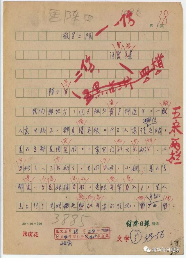 汪曾祺发表于《人民文学》的短篇小说故里三陈。记者张漫子摄