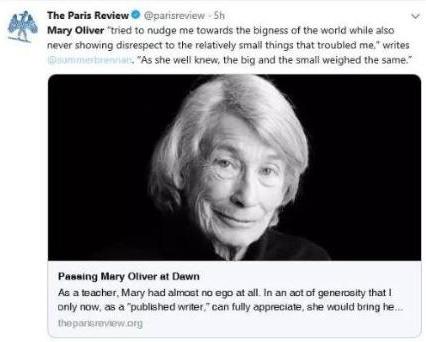 著名文学期刊《巴黎评论》连发数条推文,摘选奥利弗的诗句