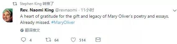 随后,作家斯蒂芬·金转推了感谢奥利弗的推文。