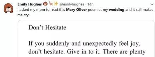 在推特上,大众自动发起了纪念活动,回忆自己的人生和玛丽·奥利弗的诗歌产生的关联: