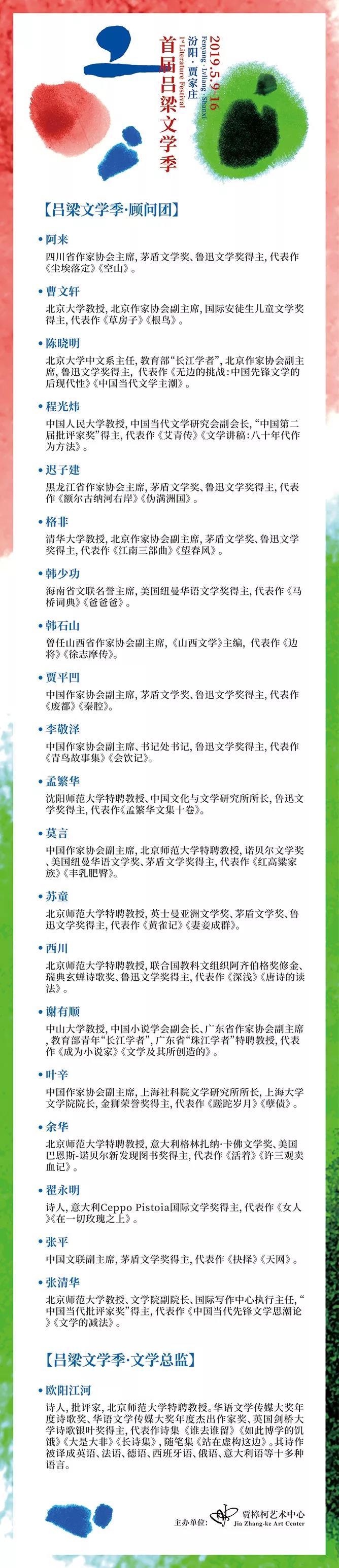 值得注意的是,吕梁文学季将重点推出以“诺奖之后的莫言”为主题的莫言研讨会。此次莫言研讨会将由贾樟柯艺术中心与北京师范大学国际写作中心联合主办。