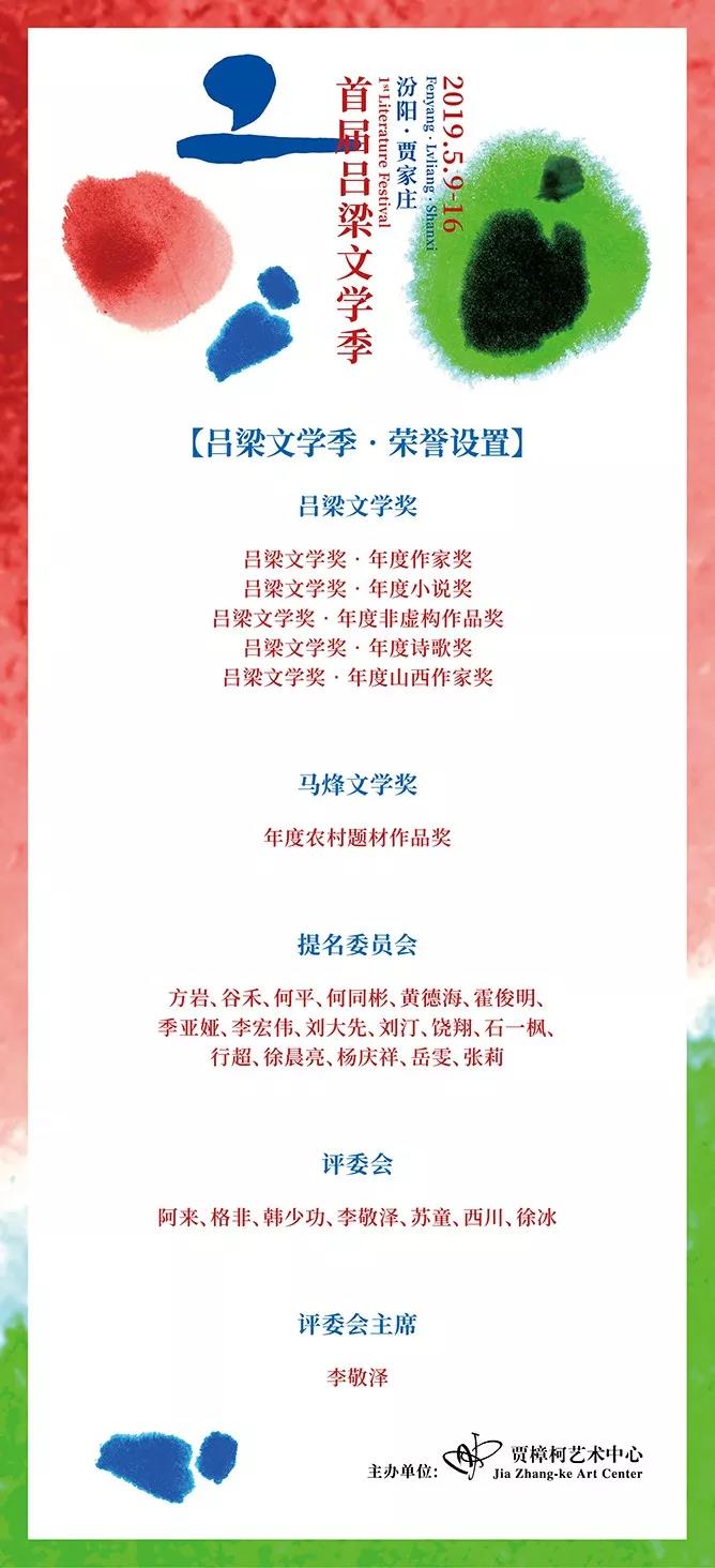 4月8日,由贾樟柯艺术中心主办的吕梁文学季于北京举办新闻发布会,正式公布首届吕梁文学季将在2019年5月9日至5月16日期间,于山西吕梁汾阳贾家庄举办,这也是在乡村举办的为数不多的当代文学活动。本届吕梁文学季同时于临县碛口古镇设立分会场。