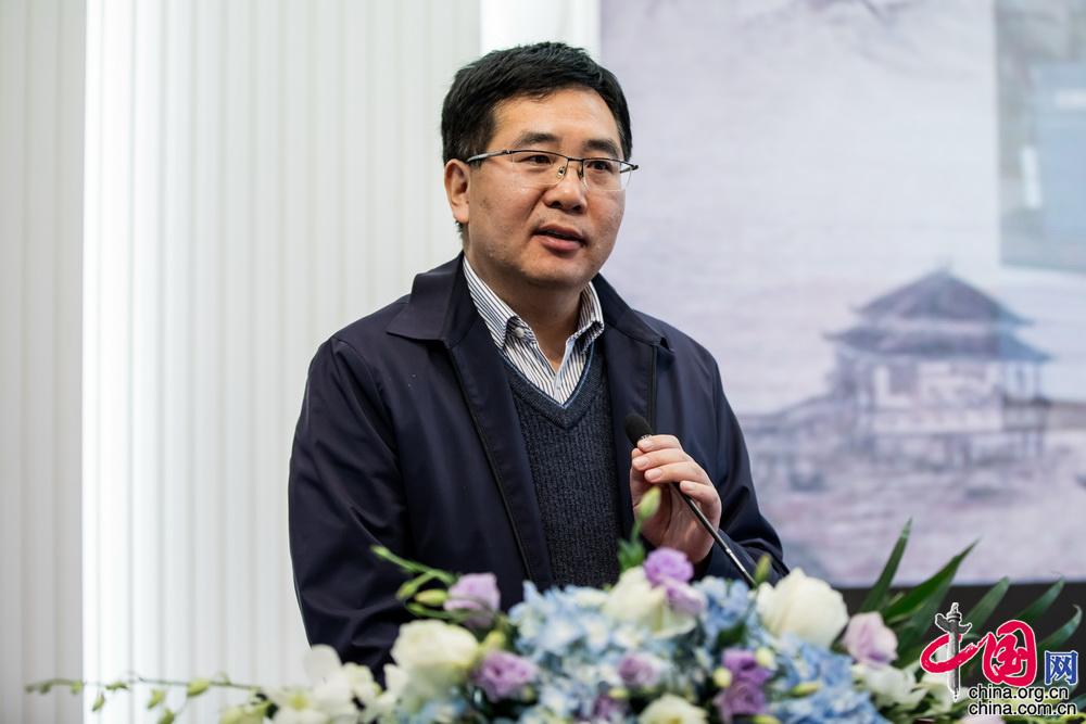 国务院参事室中华诗词研究院杨志新副院长代表中央文史馆袁行霈馆长致辞。中国网记者 郑亮摄