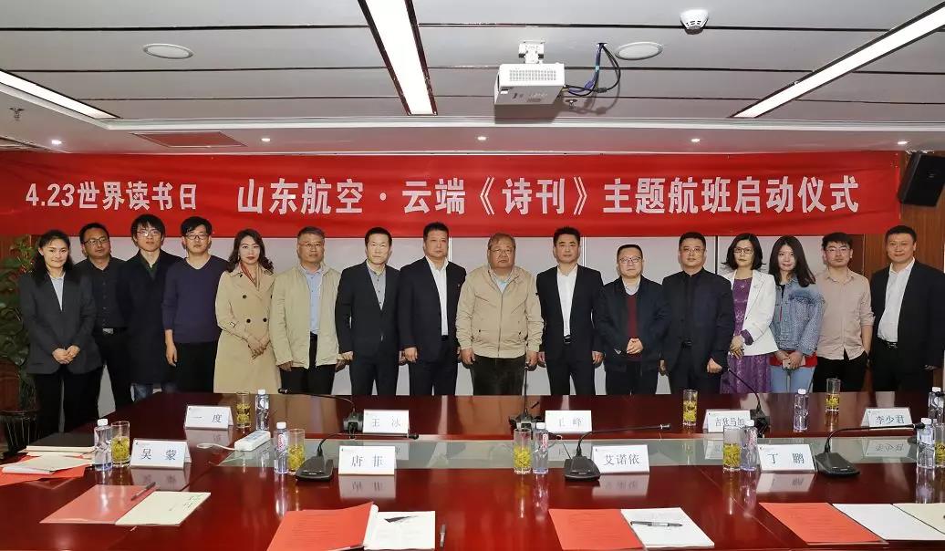 4月22日,“世界读书日”前一天,由山东航空与中国作协《诗刊》社主办,国际诗酒文化大会、山东航空新之航传媒承办的山东航空·云端《诗刊》主题航班启动仪式在北京举行。中国作家协会副主席、书记处书记、鲁迅文学院院长吉狄马加,著名诗人、《诗刊》社主编李少君,评论家、中国作协《诗刊》副主编王冰,山东航空北京分公司总经理王峰、党委书记孙开友,山东航空新之航传媒总经理刘占虎、副总经理张颖博,青年诗人、北京华凯信和文化中心总经理一度,《人民文学》编辑赵依等诗人、大咖、专家、嘉宾出席了启动仪式。