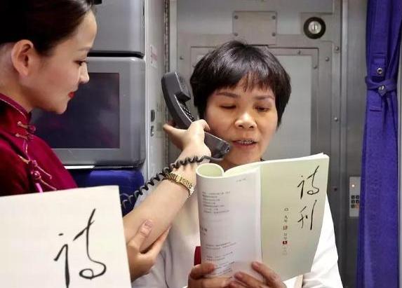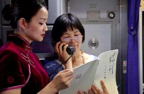阿姨的话同样赢来大家热烈的掌声,踊跃朗诵的旅客仿佛把客舱当作自己的舞台,用那小小的话筒传递着自己对诗歌的热爱,对文化的感悟。
