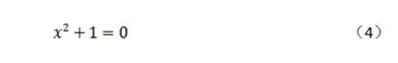 式(4)无实数解,事实上,无论 X是任何实数,方程的左边总是大于零,所以这个方程式没有实数的解,因此中国古代数学家不去讨论这个方程式。