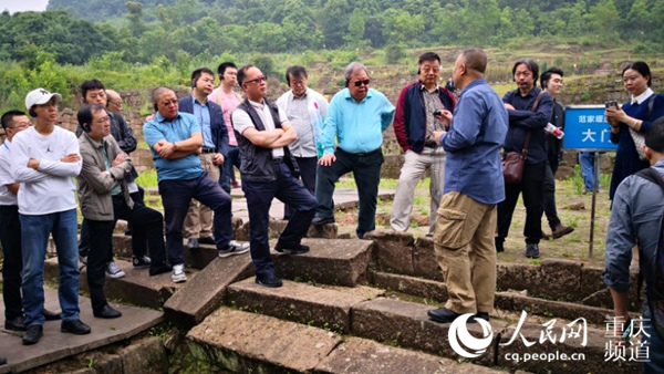 活动期间,参会文学名家们前往钓鱼城古战场遗址采风。粱修昌 摄