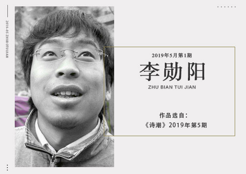 李勋阳,生于1980年,陕西丹凤人,现居云南丽江。诗人、小说家。创作有小说《我们都是蒲公英,飘着飘着就散了》《黑白心跳》《别摇了,滚吧》等,诗歌专辑《身体快乐》等。